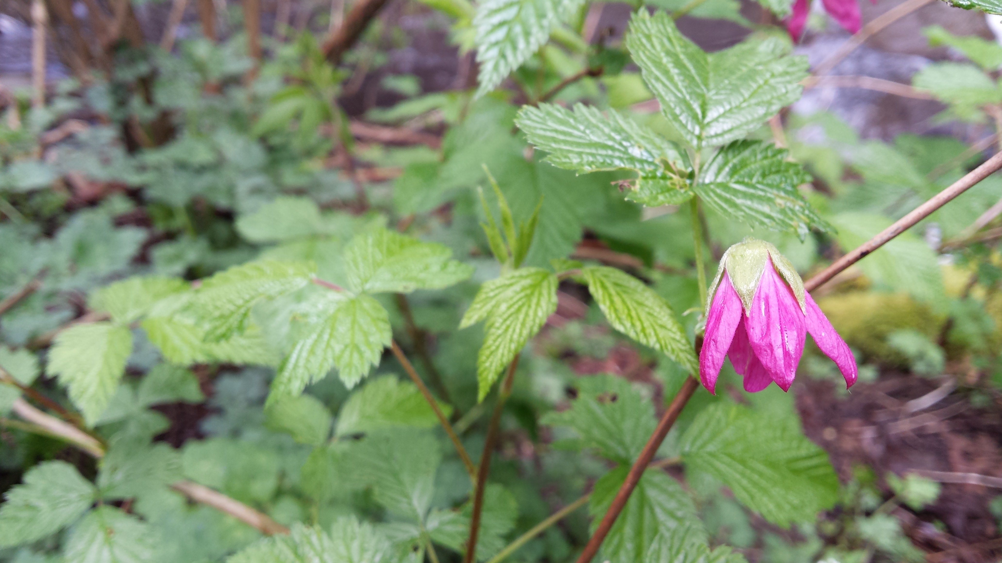 Salmonberry blossom. Image via me.
