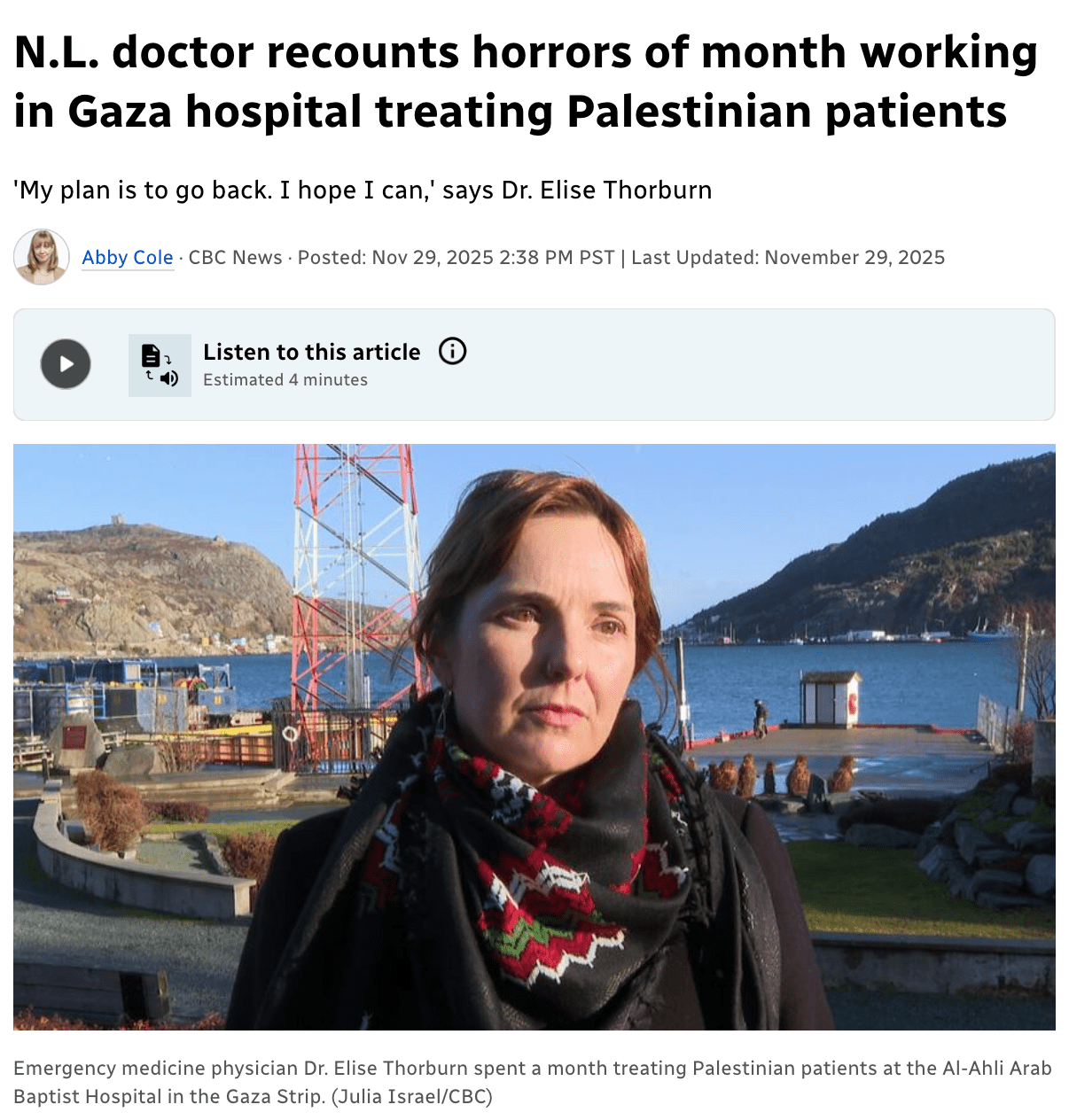 N.L. doctor recounts horrors of month working in Gaza hospital treating Palestinian patients via CBC News.