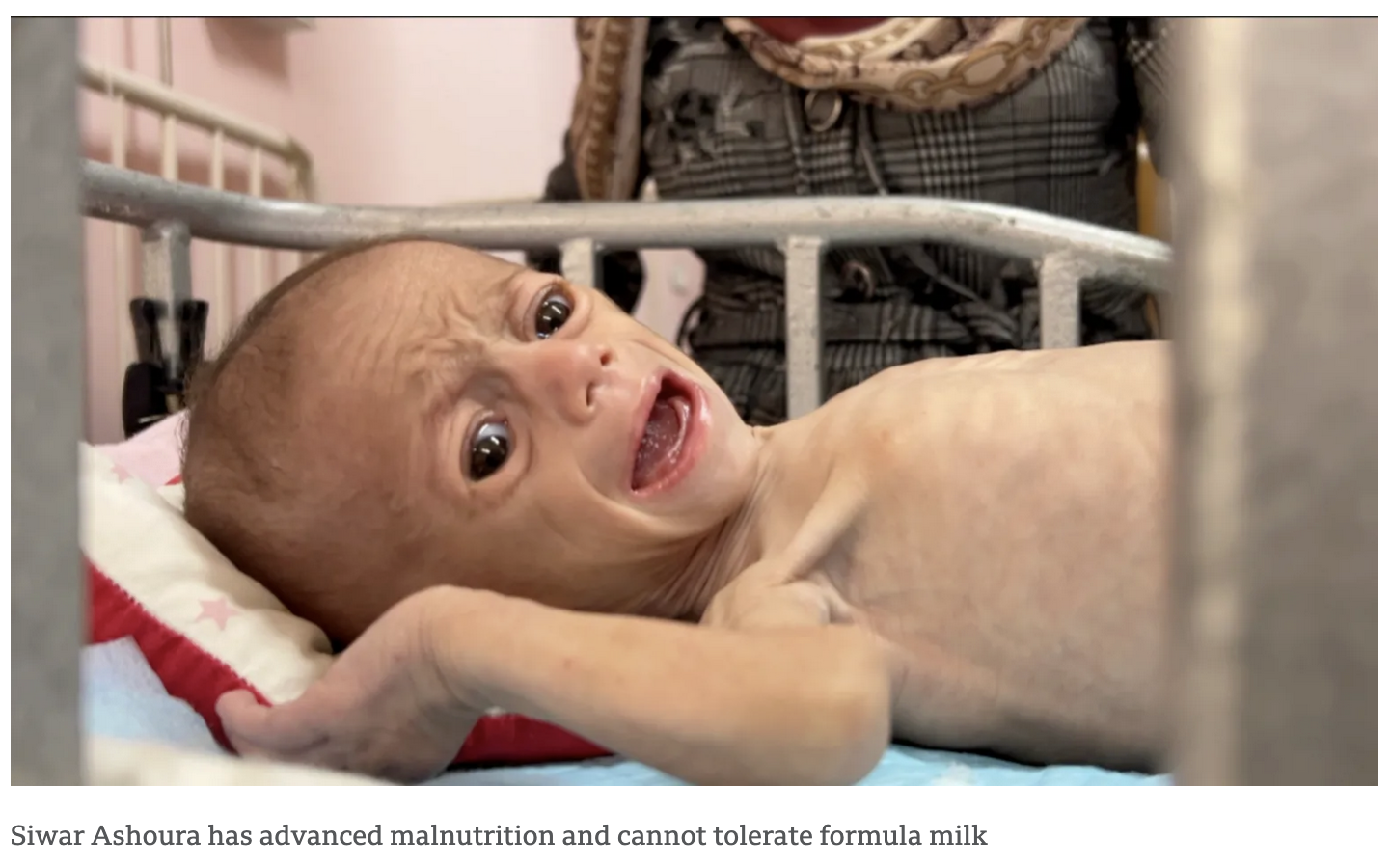 Scared and malnourished – footage from Gaza shows plight of children and aftermath of Israeli strike via BBC.