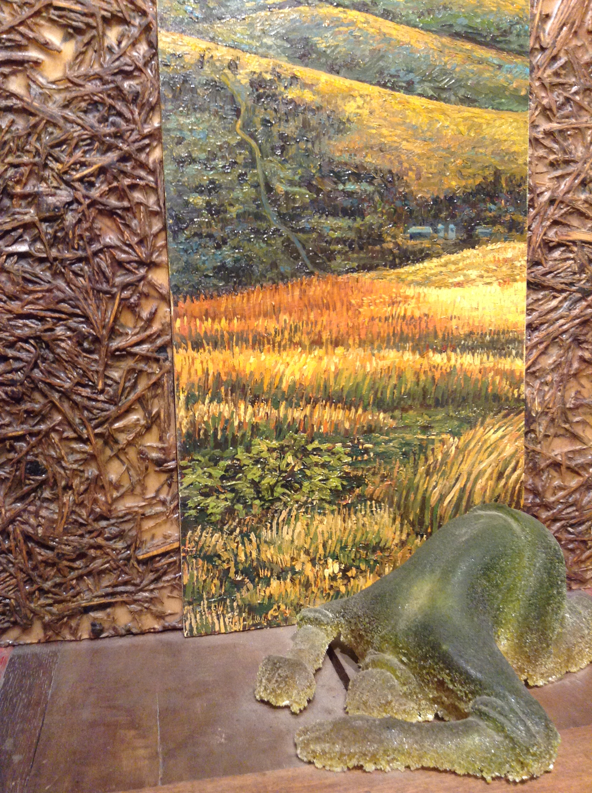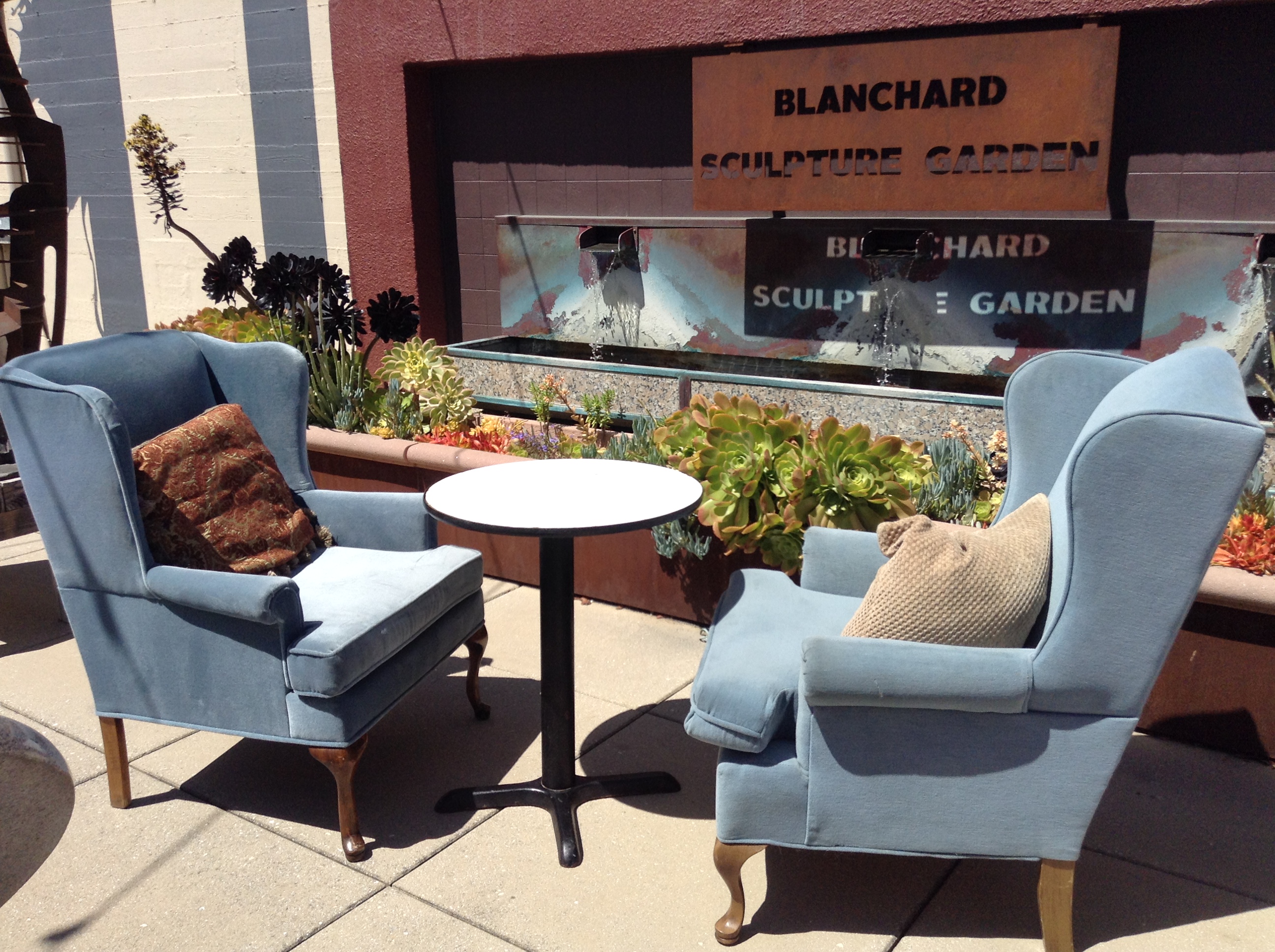 Here are a few images capturing my visit to the Santa Cruz Museum of Art & History (MAH). During my excursion, I met Mr. Steven Trimmer who was preparing for an evening performance at the MAH. Mr. Trimmer is researching “new interfaces between plants and digital media using calcium ion sensors” at the University of California Santa Cruz. He designed this amazing cybernetic sculpture, Hidden Stream, that “uses bio-sensing to sonify and visualize the hidden inner processes of plants.” These processes are interpreted as musical patterns that are then expressed through a custom-made electro-acoustic lyre. It challenges conventional thinking and I love it! Imagine if we attached sensors to our houseplants! We could wake up to a symphony every morning. To learn more about his work, click here @ The Leap Year. Here’s a short video: