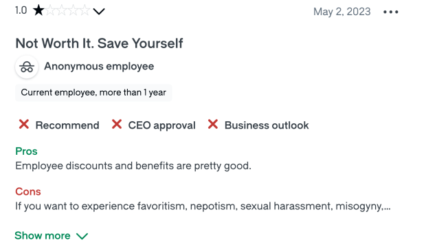 In online forums, people recalled allegations of bullying, favoritism, racism, and misogyny. Others described one executive as “a real creep to the ladies who worked there” and someone who treated colleagues poorly: