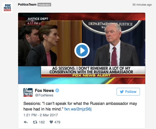 Sessions, an early supporter of President Donald Trump and a policy adviser to the Republican candidate, did not disclose those communications at his confirmation hearing in January when asked whether “anyone affiliated” with the campaign had contact with the Russians.